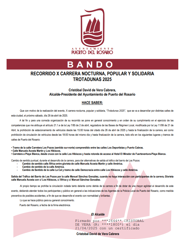 Informamos que, debido a La Carrera Nocturna «Trotadunas», la parada de Los Pozos quedará inhabilitada mañana, día 26/04/2025 a partir de las 18:00.