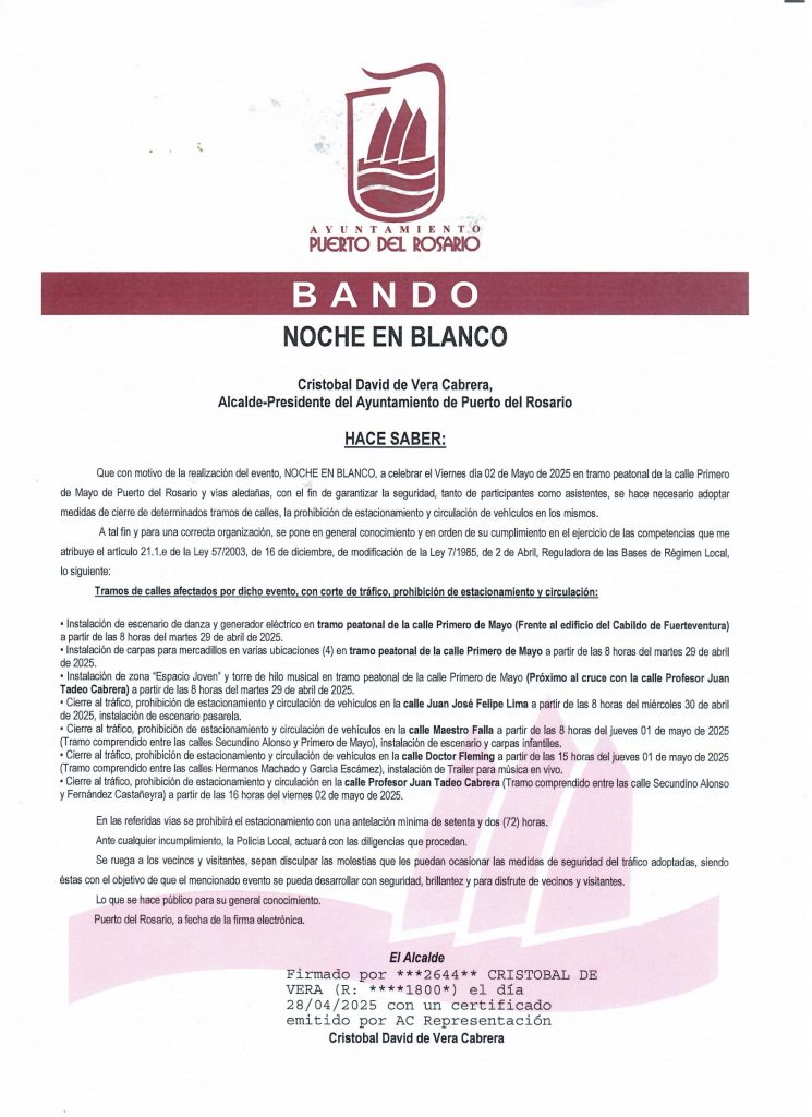 Informamos que, debido a «La Noche En Blanco», la parada del Ayuntamiento quedará inhabilitada el viernes, día 02/05/2025 a partir de las 16:00.